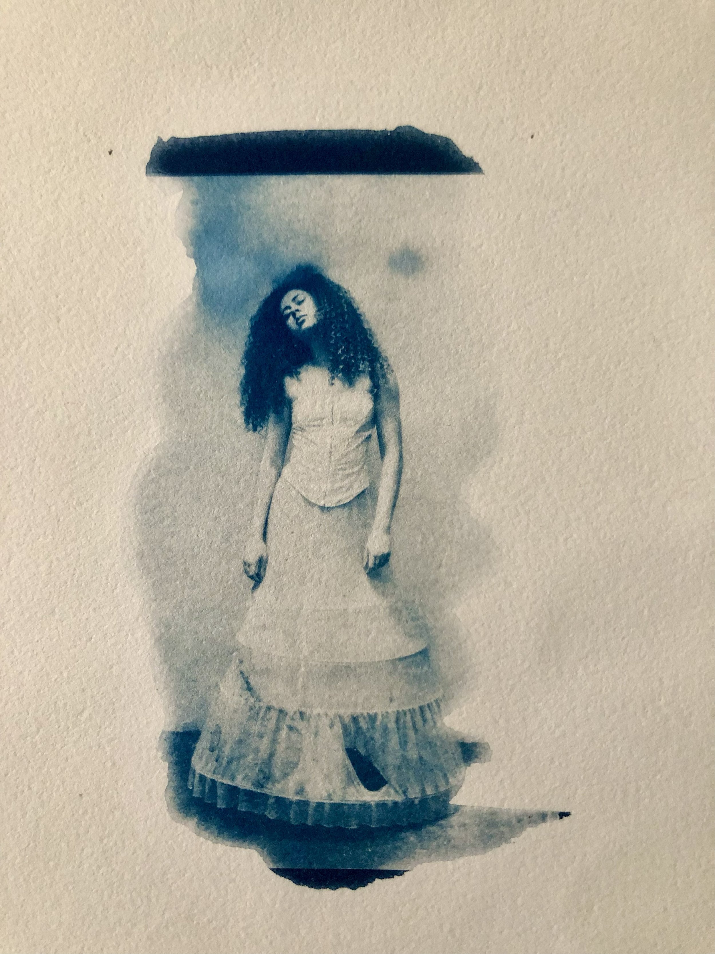 Cyanotype is one of the first photographic mediums where an image was captured using light sensitive emulsion. Using glass plates or photograms where objects were placed on the coated papers, this technique was invented in 1842.