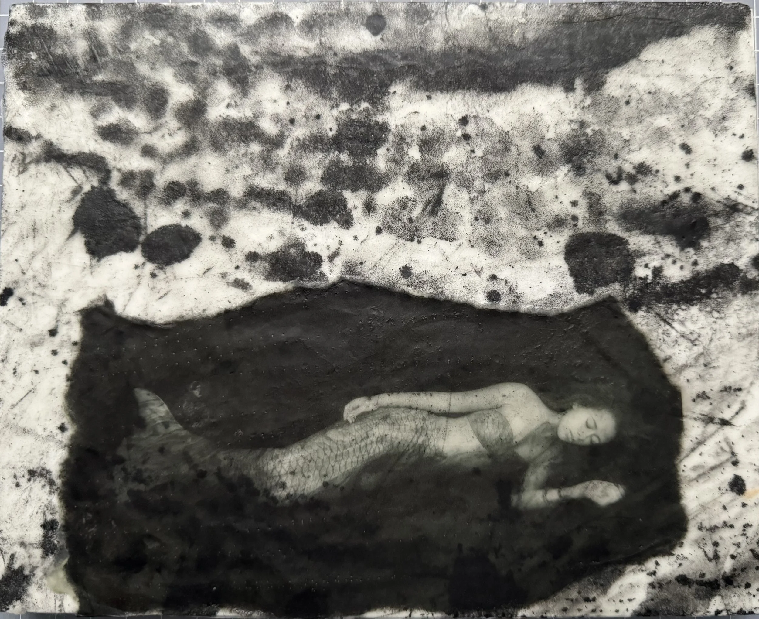 Photo Encaustic with Japanese Paper, Indian ink & oil pigments on panel